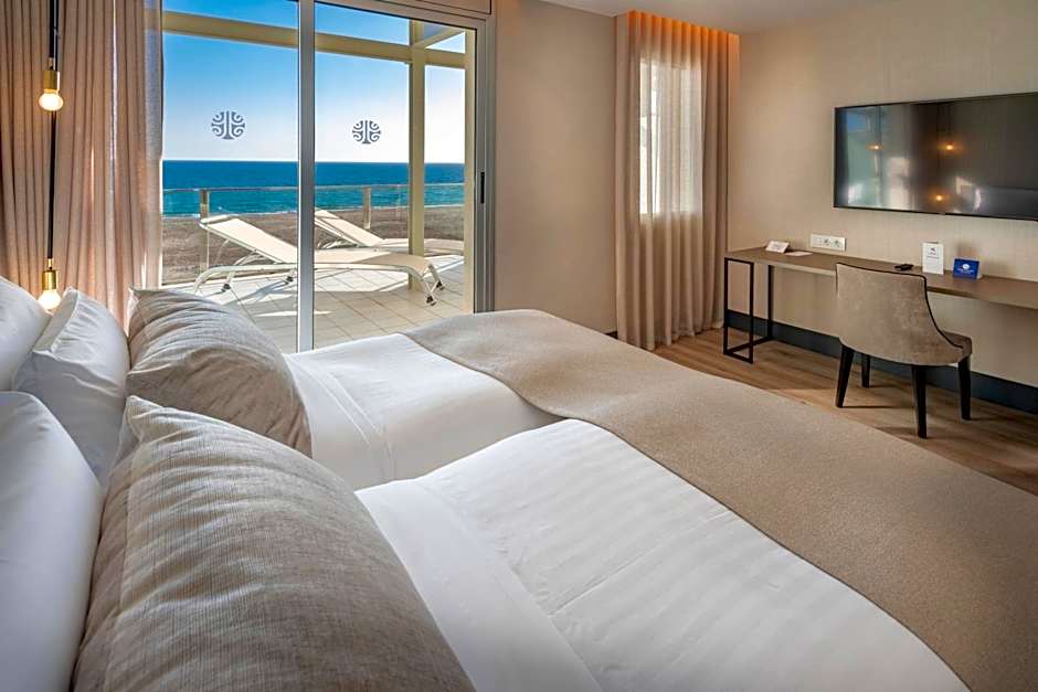 “...Clean modern hotel with great view of the Mediterranean Sea. Breakfast was very good with many choices. Comfortable and spacious room...”